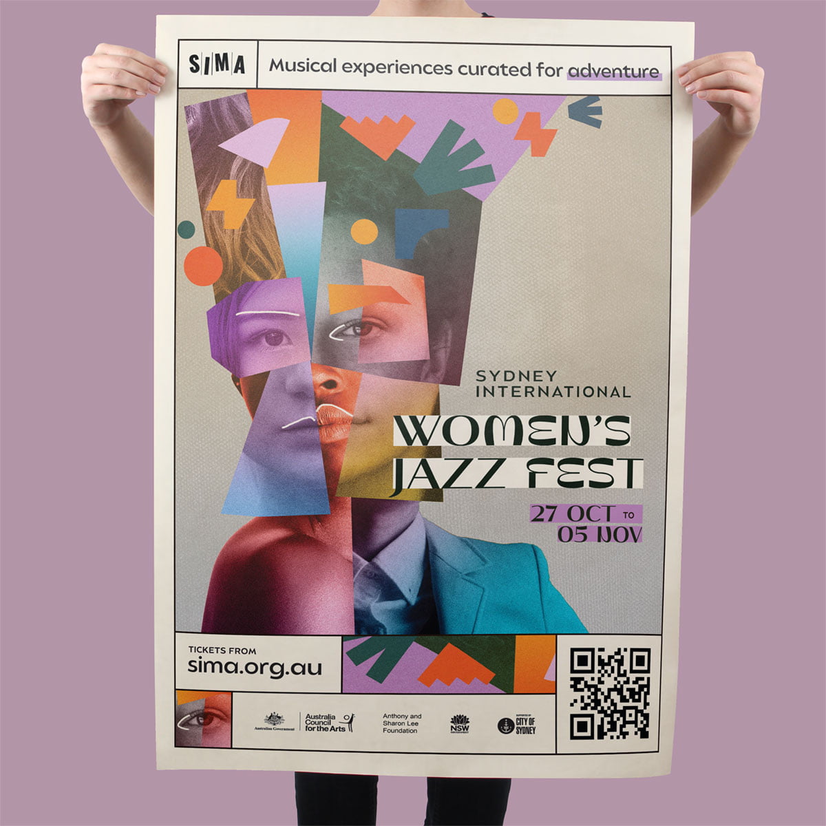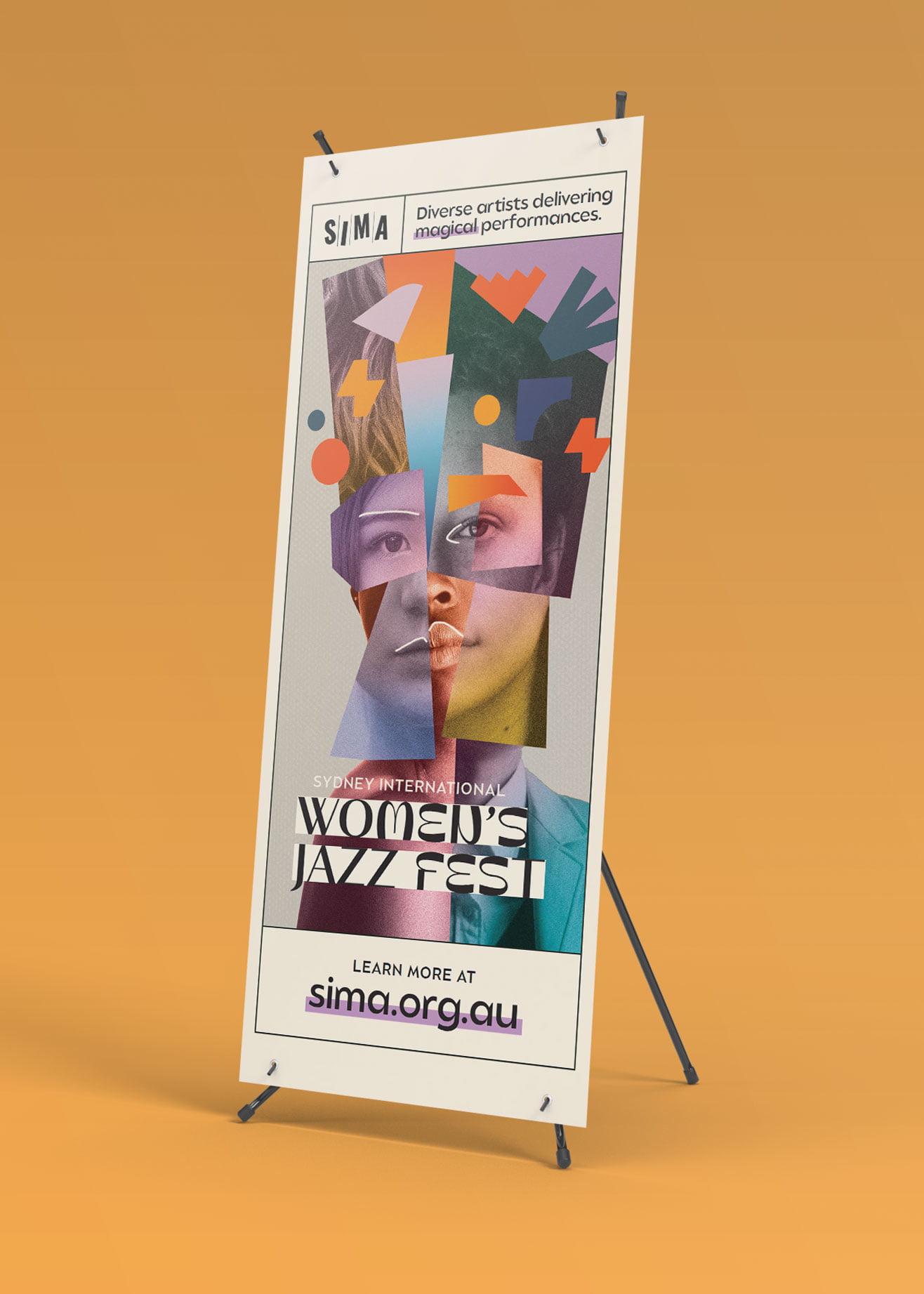 The Sydney International Women’s Jazz Festival celebrates the talents and diversity of musicians identifying as women from around the globe. My brief for the 2022 festival was to encapsulate that idea in a hero image. I created a striking collage from different faces, which formed the basis for the branding. I applied this branding to posters, flyers, social assets, and animations.