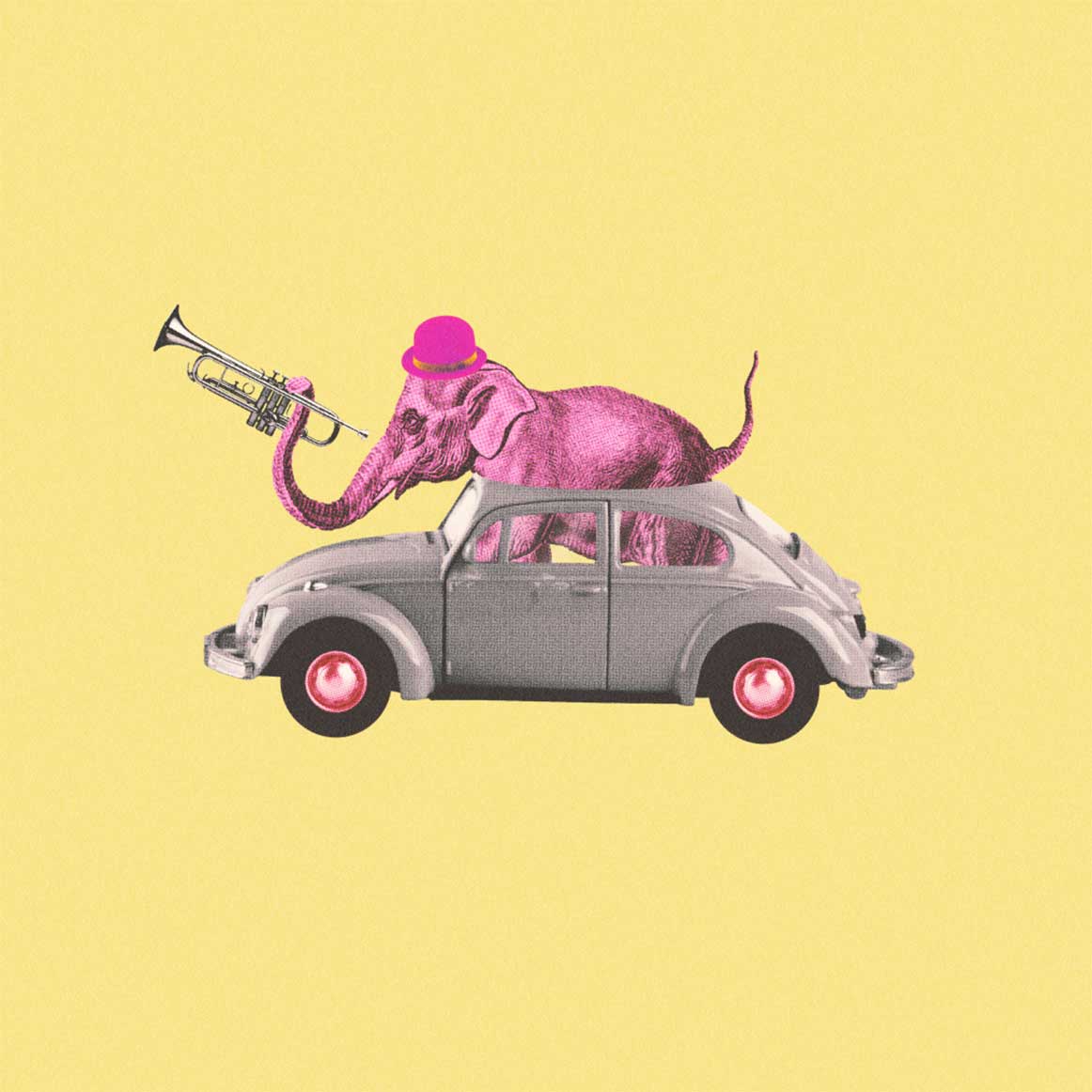 I collated a selection of quirky and unique buildings, sourced from photography of Route 66, and recoloured them in Miami-inspired hues to make the elephant’s journey visually interesting for young children.